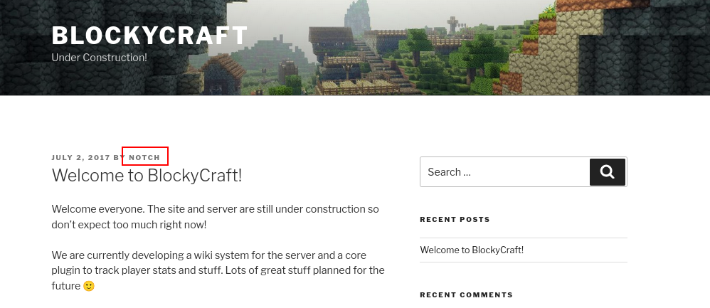 We also identified the username Notch from the only available blog post.