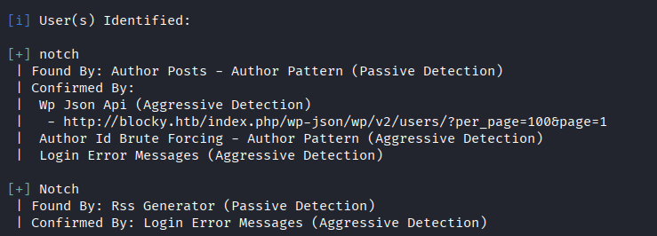 The scan did not reveal any plugins. However, it confirmed the previously identified user Notch.